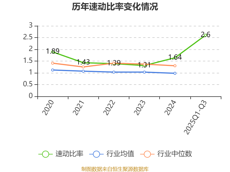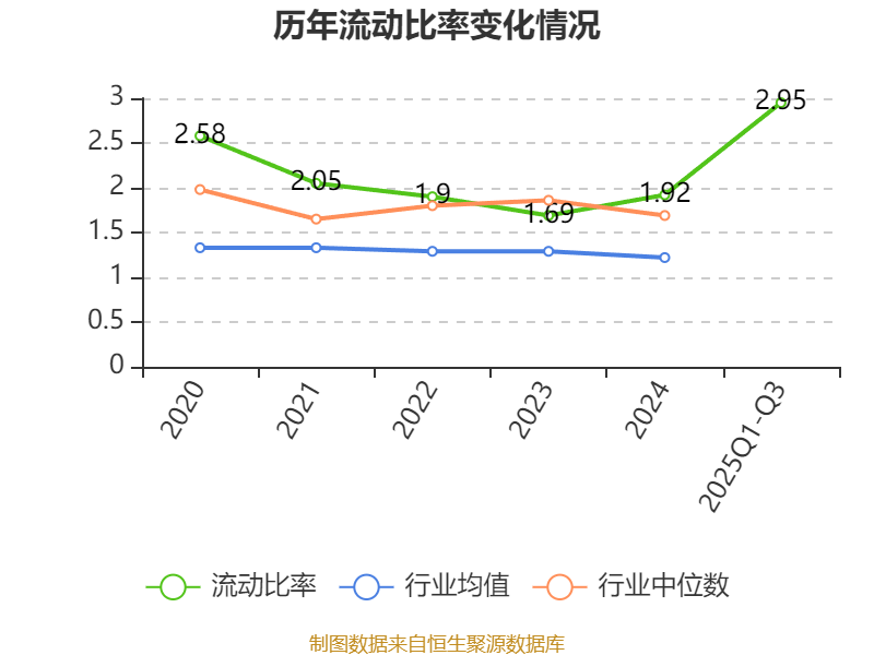 2025年前三季度,公司流动比率为2.95,速动比率为2.6。