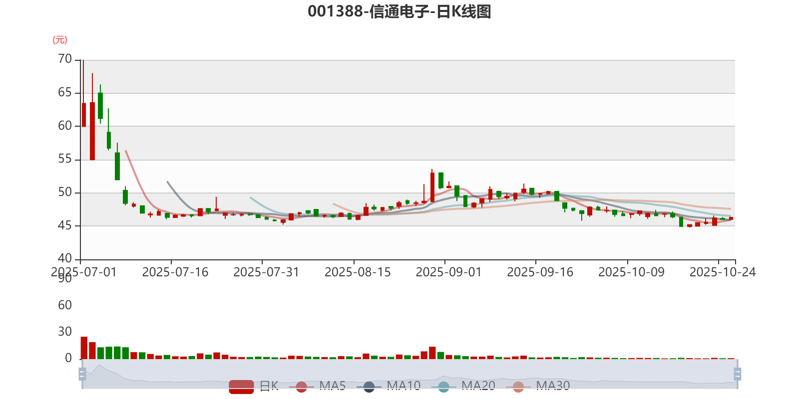 中证智能财讯信通电子(001388)10月28日披露2025年第三季度报告。前三季度公司实现营业总收入6.68亿元,同比增长4.05%;归母净利润7056.01万元,同比下降6.78%;扣非净利润6219.57万元,同比下降7.93%;经营活动产生的现金流量净额为-1728.29万元,上年同期为401.16万元;报告期内,信通电子基本每股收益为0.54元,加权平均净资产收益率为0.07%。