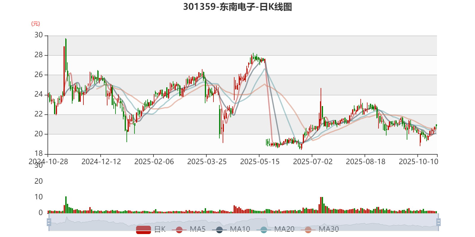 以10月27日收盘价计算,东南电子目前市盈率(TTM)约为59.57倍,市净率(LF)约2.97倍,市销率(TTM)约7.47倍。