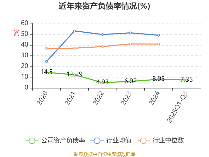 2025年前三季度,公司流动比率为12.23,速动比率为10.97。