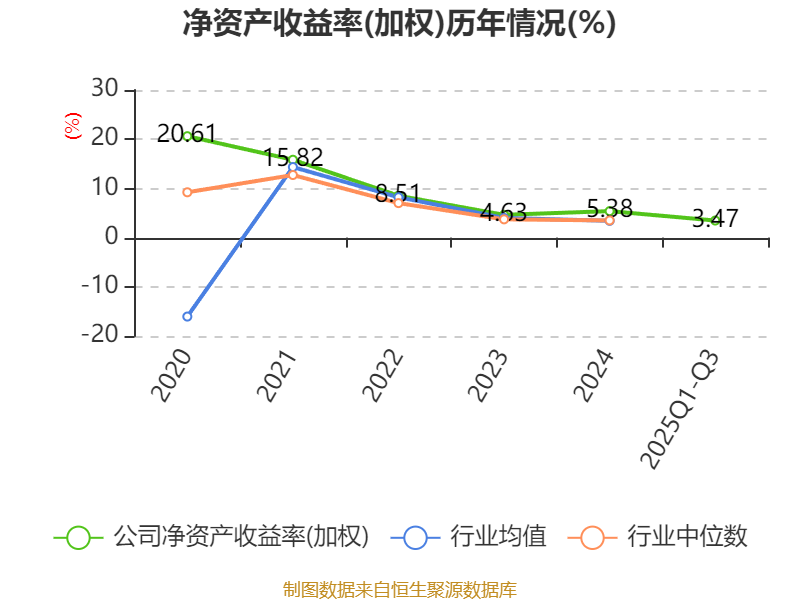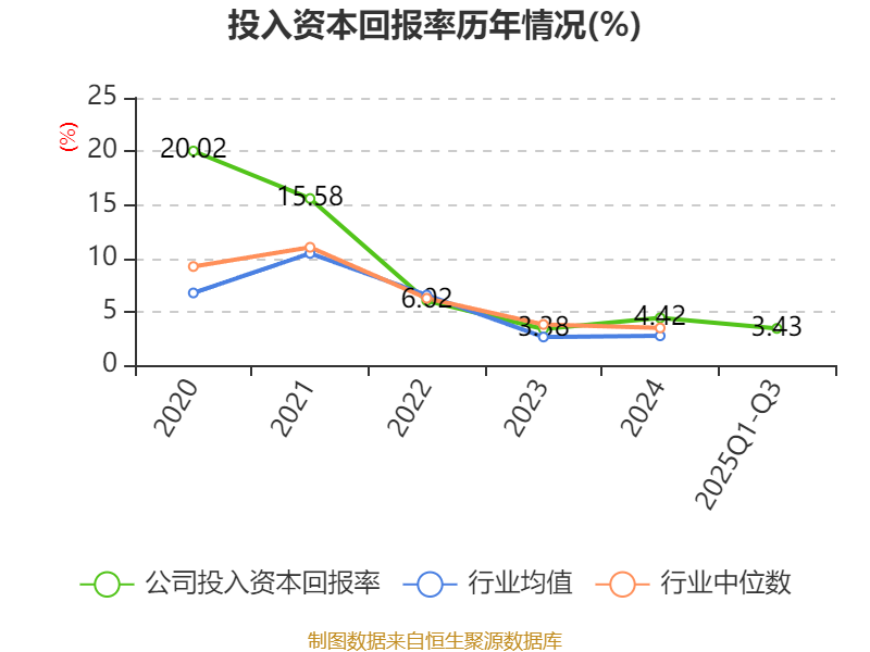 盈利能力方面, 2025年前三季度公司加权平均净资产收益率为3.47%,同比下降0.45个百分点。公司2025年前三季度投入资本回报率为3.43%,较上年同期上升0.24个百分点。