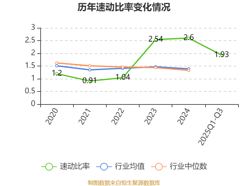 2025年前三季度,公司流动比率为3.06,速动比率为1.93。