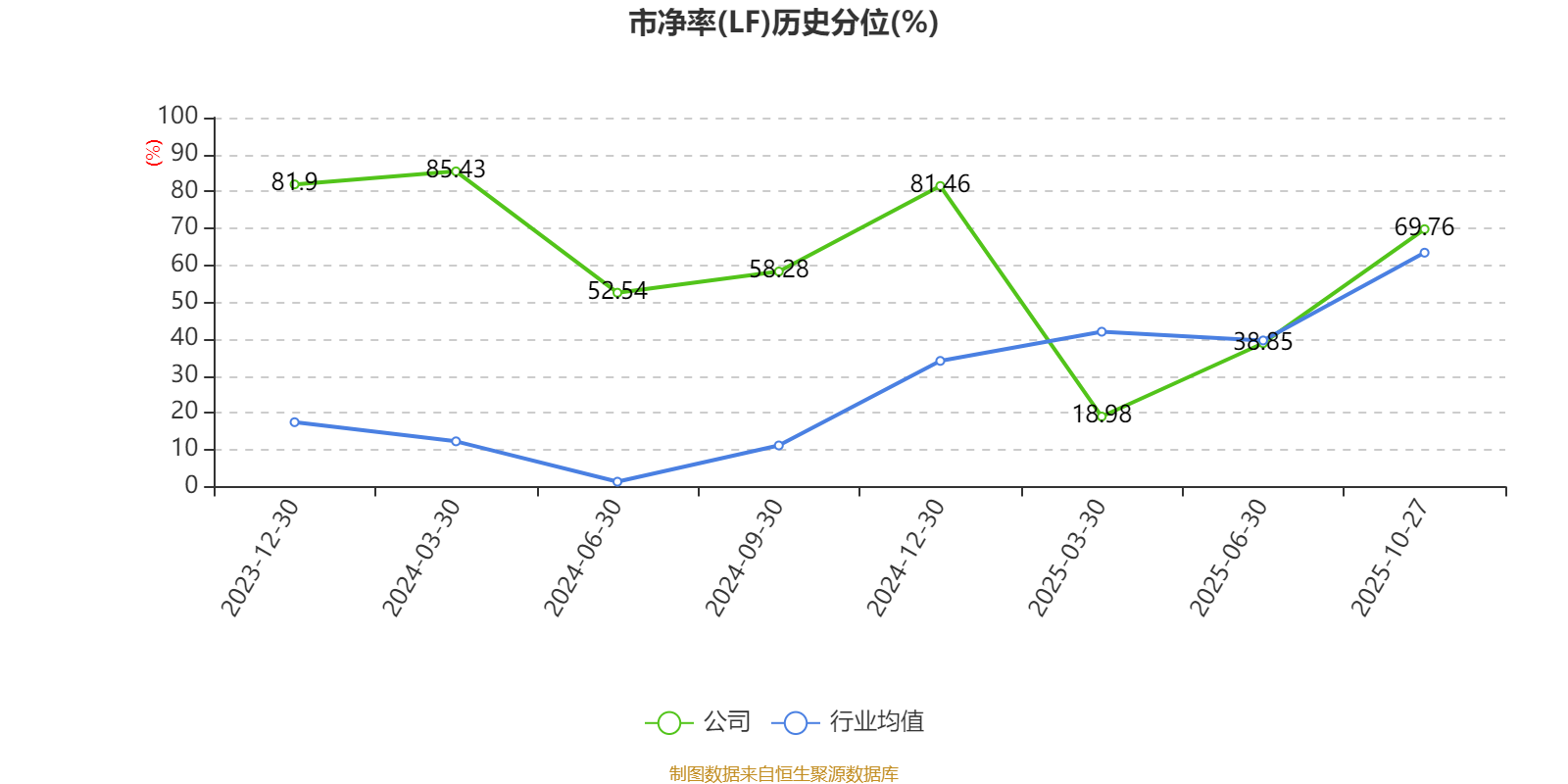 市盈率、市净率为负时,不显示当期分位数,会导致折线图中断。