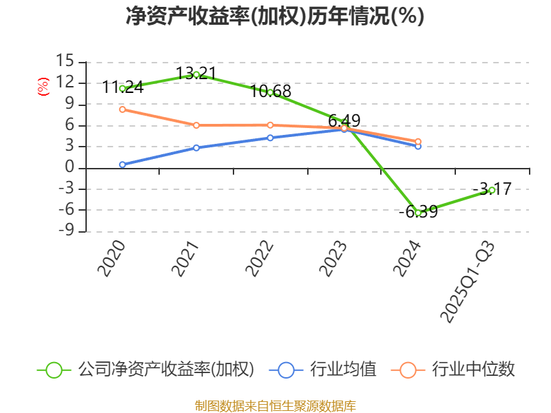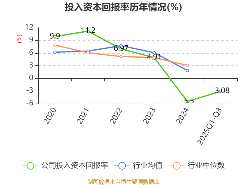 盈利能力方面, 2025年前三季度公司加权平均净资产收益率为-3.17%,同比下降1.39个百分点。公司2025年前三季度投入资本回报率为-3.08%,较上年同期下降1.02个百分点。