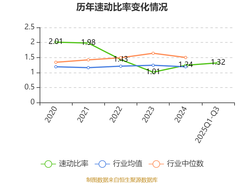 2025年前三季度,公司流动比率为1.68,速动比率为1.32。