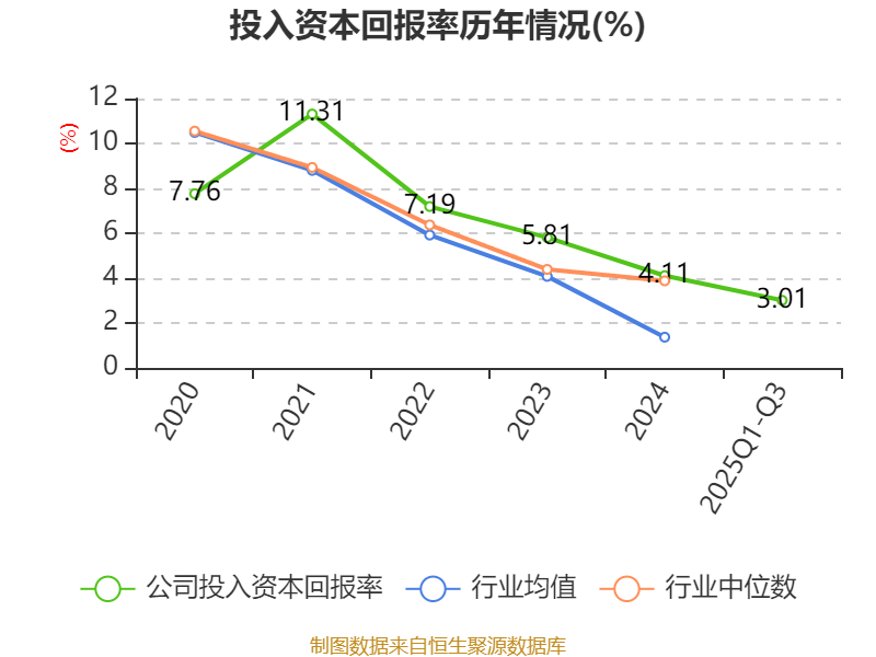 盈利能力方面, 2025年前三季度公司加权平均净资产收益率为4.58%,同比上升1.45个百分点。公司2025年前三季度投入资本回报率为3.01%,较上年同期上升0.76个百分点。