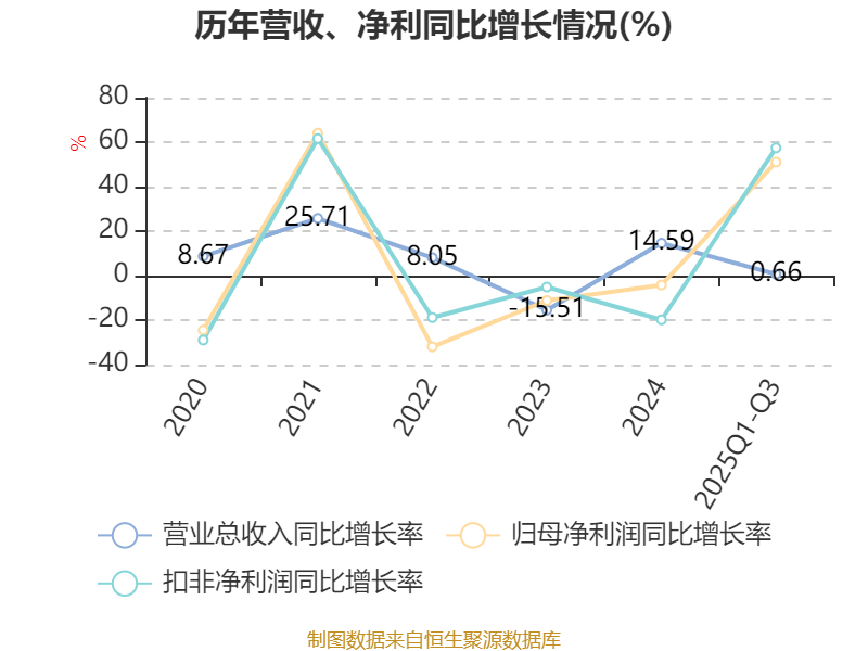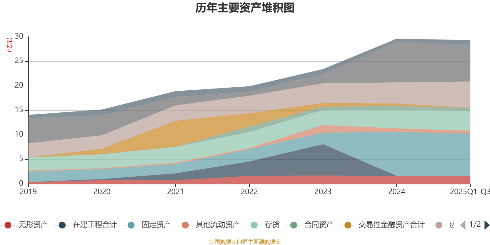 资产重大变化方面,截至2025年三季度末,公司应收票据及应收账款较上年末增加24.22%,占公司总资产比重上升3.71个百分点;货币资金较上年末减少8.28%,占公司总资产比重下降2.05个百分点;交易性金融资产合计较上年末减少94.98%,占公司总资产比重下降1.64个百分点;存货较上年末增加7.28%,占公司总资产比重上升1.07个百分点。