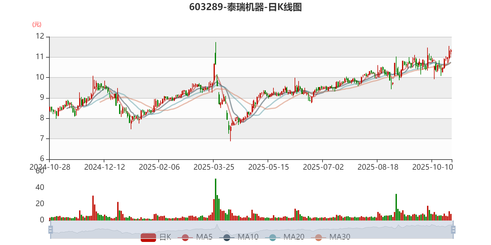 以10月27日收盘价计算,泰瑞机器目前市盈率(TTM)约为31.75倍,市净率(LF)约2.26倍,市销率(TTM)约2.88倍。