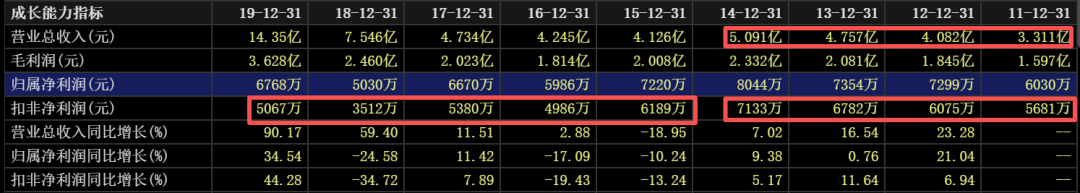 上市前航新科技的成长性只能说是一般,扣非净利润从2011年的5681万元增至2014年的7133万元。上市之后公司业绩徘徊不前甚至呈下滑趋势,2015年即上市当年,公司扣非净利润为6189万元,一上市就下滑了13.24%,到2019年扣非净利润则已降至5067万元。