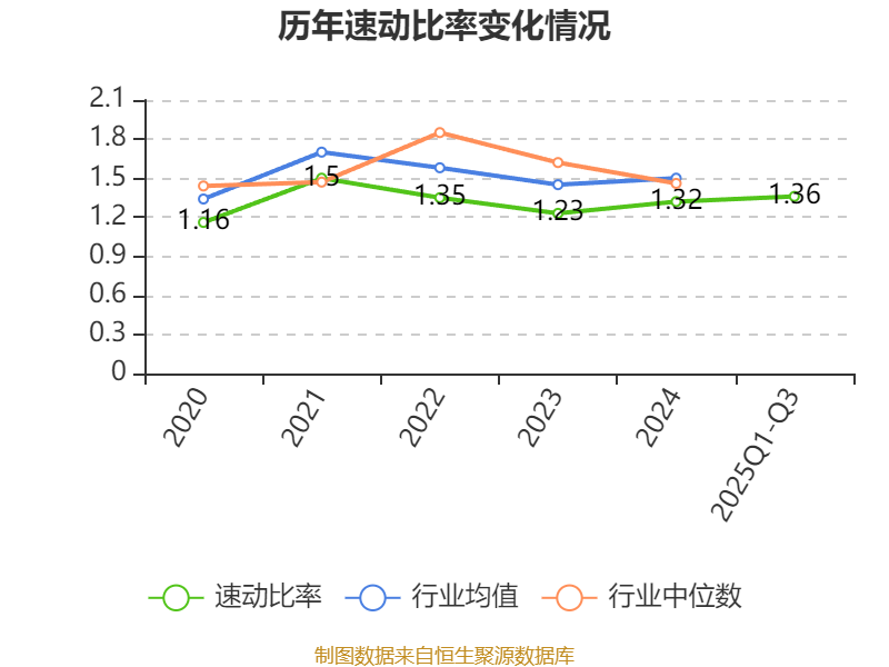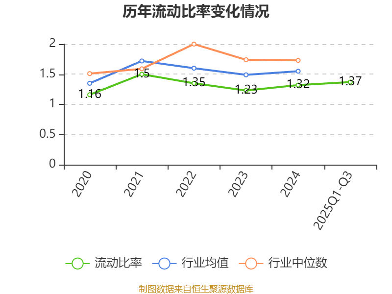 2025年前三季度,公司流动比率为1.37,速动比率为1.36。