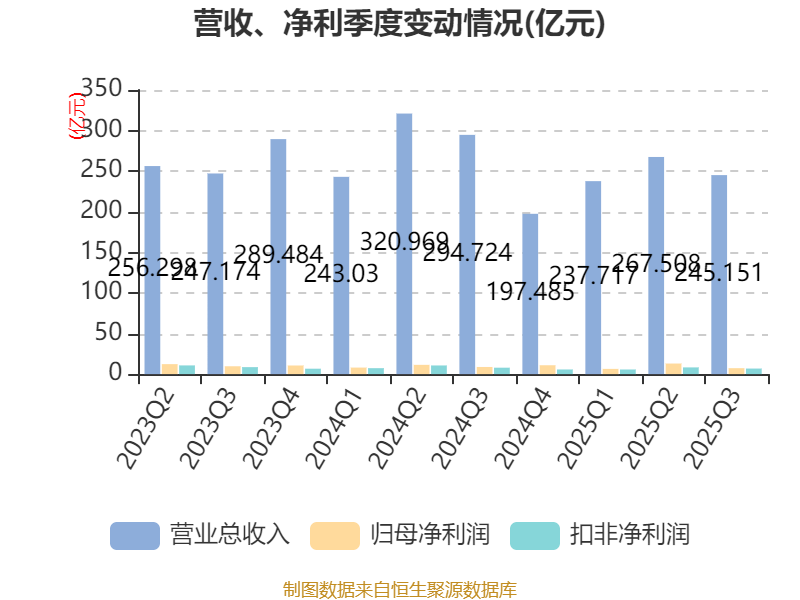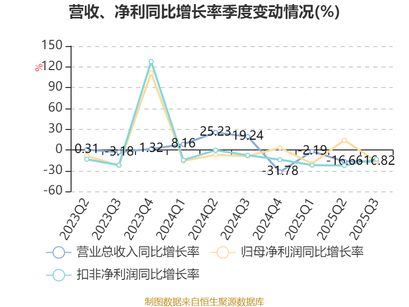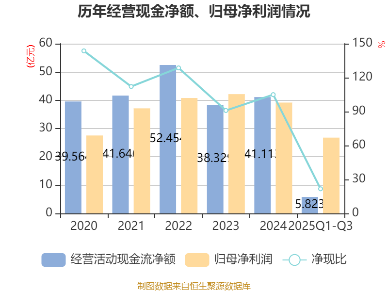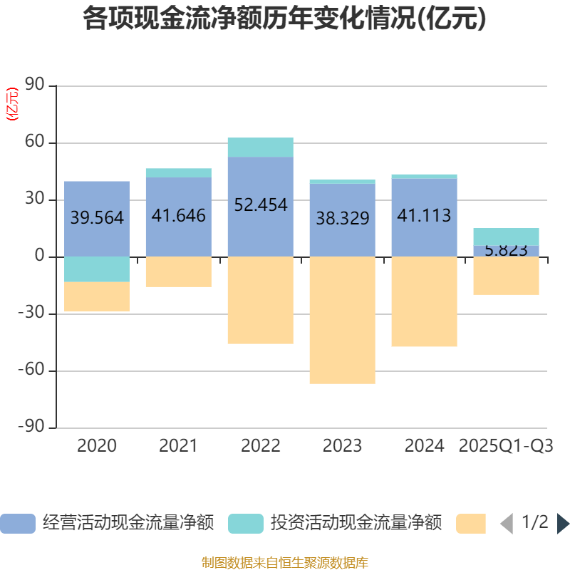 2025年前三季度,公司经营活动现金流净额为5.82亿元,同比增长40.24%;筹资活动现金流净额-20.21亿元,同比增加7.31亿元;投资活动现金流净额9.17亿元,上年同期为4.74亿元。