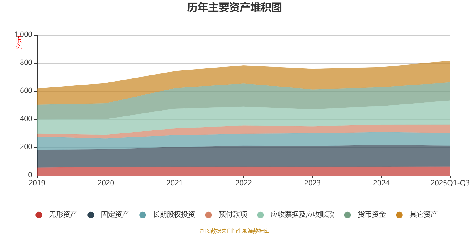 资产重大变化方面,截至2025年三季度末,公司应收票据及应收账款较上年末增加29.94%,占公司总资产比重上升3.88个百分点;固定资产较上年末减少3.28%,占公司总资产比重下降1.74个百分点;货币资金较上年末减少3.98%,占公司总资产比重下降1.63个百分点;长期股权投资较上年末减少1.89%,占公司总资产比重下降0.88个百分点。