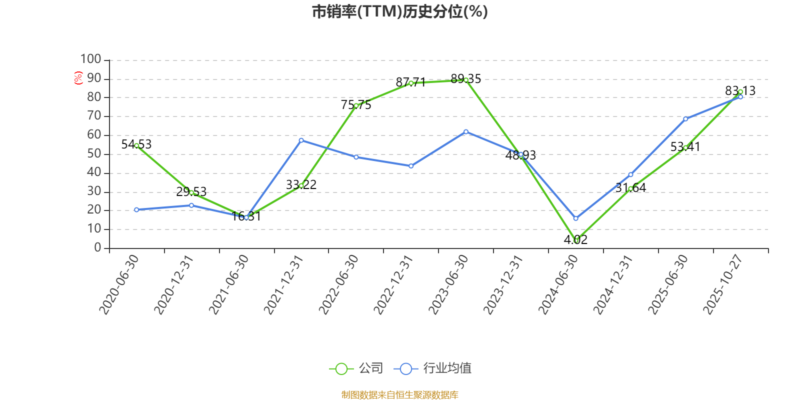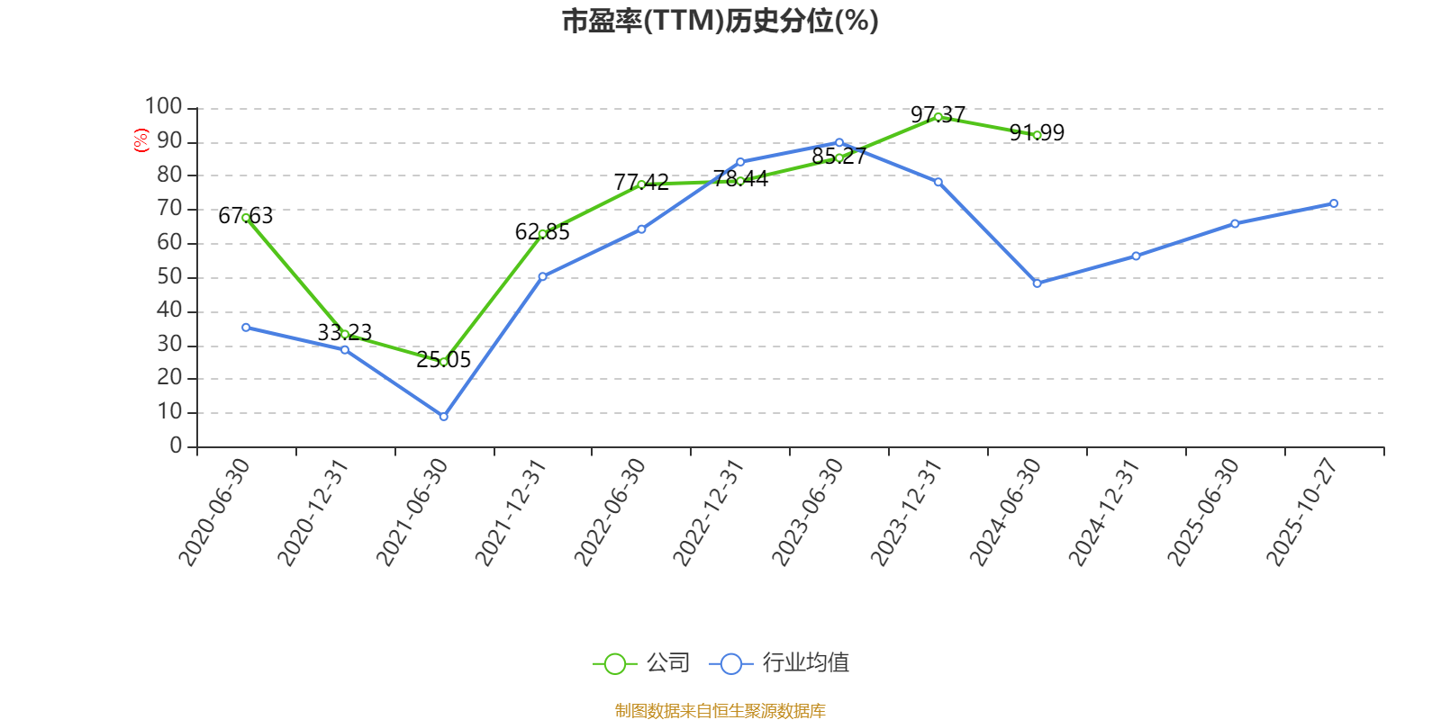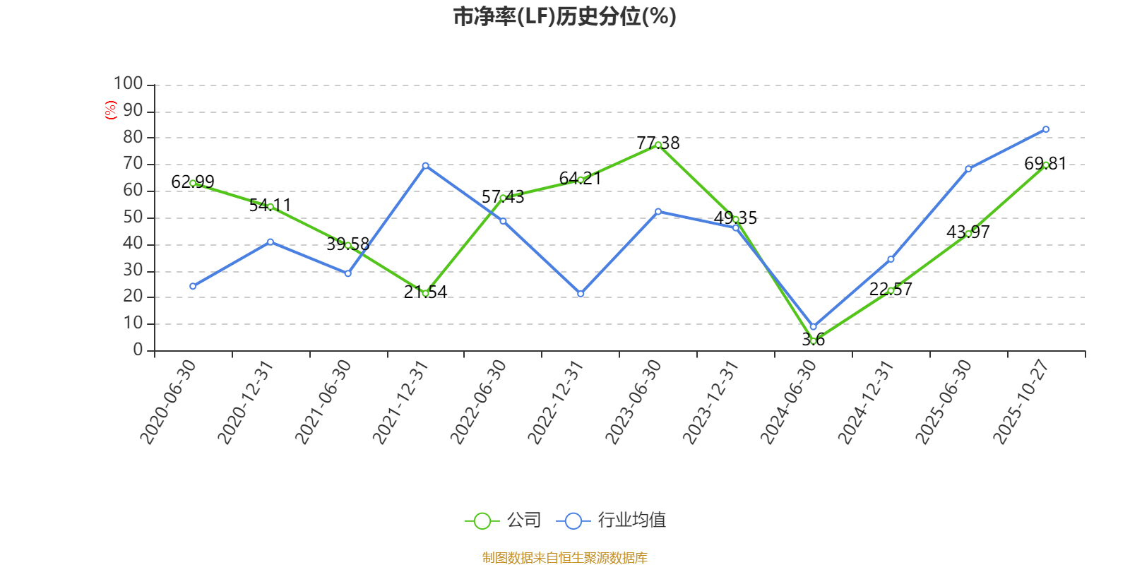 市盈率、市净率为负时,不显示当期分位数,会导致折线图中断。