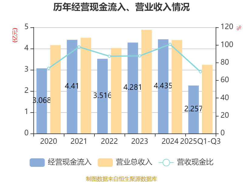 2025年前三季度,公司流动比率为2.78,速动比率为2.2。