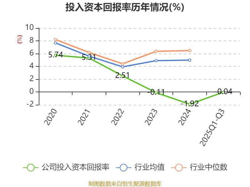 盈利能力方面, 2025年前三季度公司加权平均净资产收益率为0.47%,同比上升0.81个百分点。公司2025年前三季度投入资本回报率为-0.04%,较上年同期上升1.45个百分点。