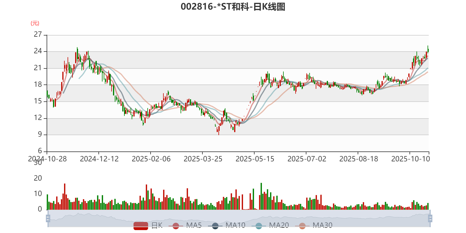 中证智能财讯 *ST和科(002816)10月28日披露2025年第三季度报告。前三季度公司实现营业总收入1.68亿元,同比增长2932.86%;归母净利润673.38万元,同比扭亏;扣非净利润亏损271.79万元,上年同期亏损3710.45万元;经营活动产生的现金流量净额为-2861万元,上年同期为-4584.7万元;报告期内,*ST和科基本每股收益为0.0673元,加权平均净资产收益率为2.96%。