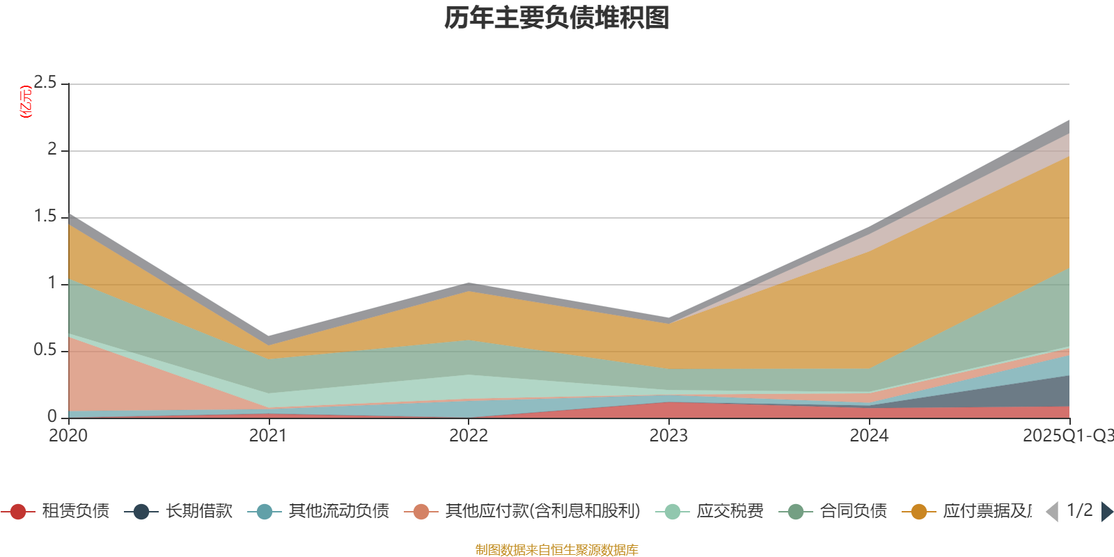 负债重大变化方面,截至2025年三季度末,公司合同负债较上年末增加239.35%,占公司总资产比重上升8.15个百分点;应付票据及应付账款较上年末减少4.56%,占公司总资产比重下降5.2个百分点;长期借款较上年末增加1111.24%,占公司总资产比重上升4.55个百分点;其他流动负债较上年末增加618.61%,占公司总资产比重上升2.73个百分点。