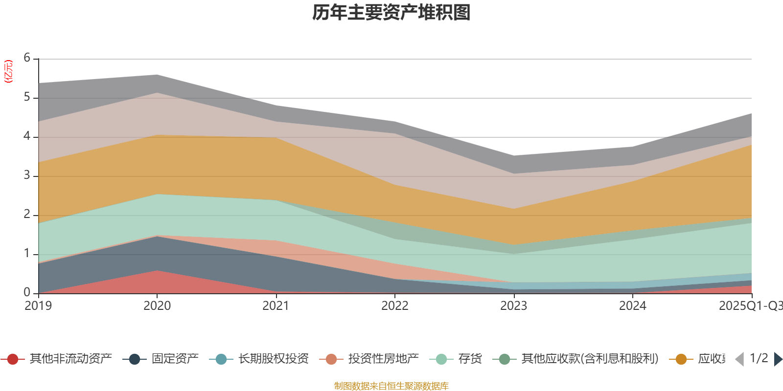 资产重大变化方面,截至2025年三季度末,公司应收票据及应收账款较上年末增加48.98%,占公司总资产比重上升7.17个百分点;货币资金较上年末减少48.27%,占公司总资产比重下降6.48个百分点;其他非流动资产较上年末增加3168.73%,占公司总资产比重上升4.06个百分点;其他应收款(含利息和股利)较上年末减少43.43%,占公司总资产比重下降3.35个百分点。