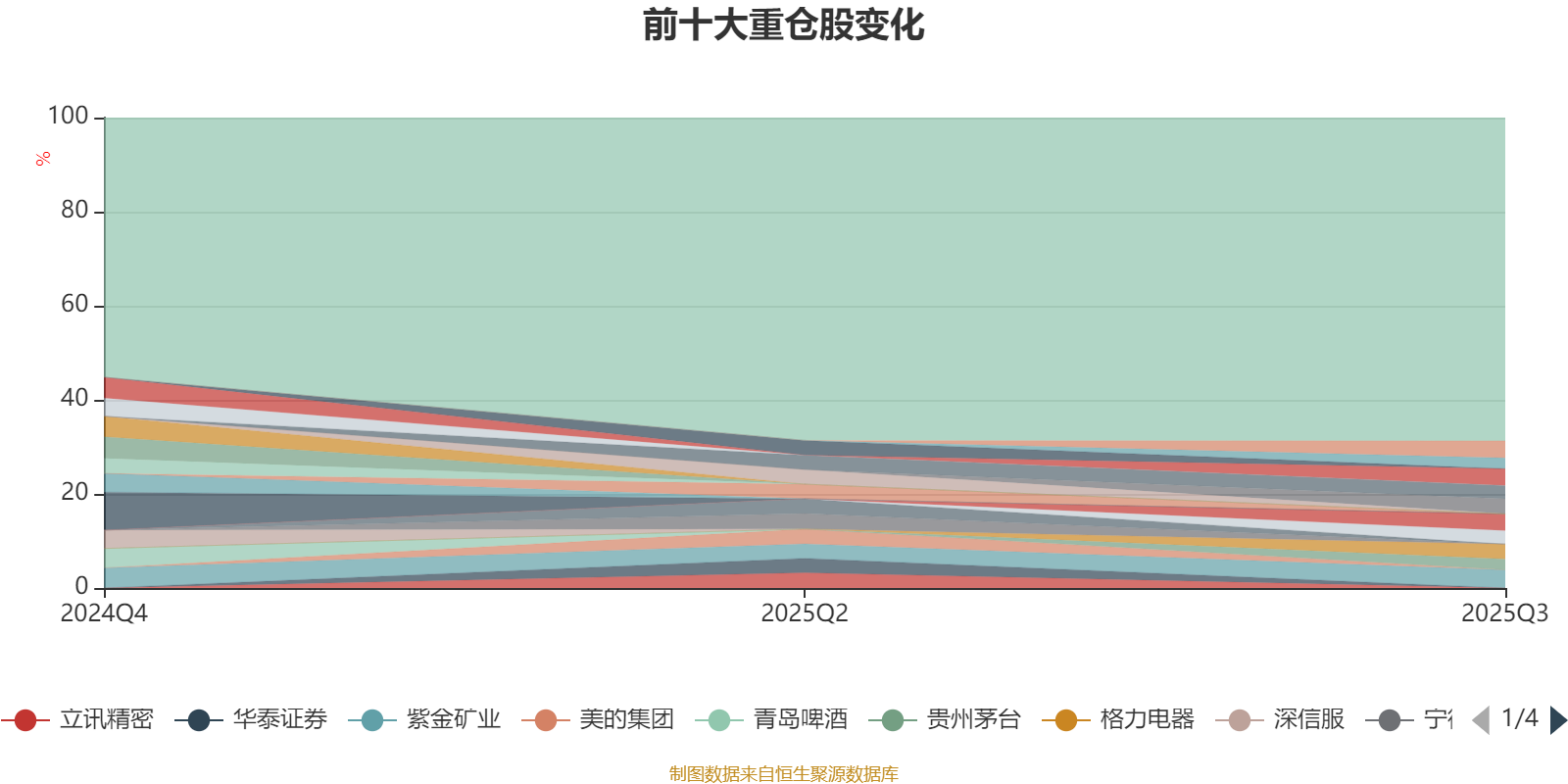 截至2025年三季度末,基金十大重仓股分别是紫金矿业、京东方A、中国太保、招商银行、中国平安、格力电器、海康威视、杭州银行、贵州茅台、今世缘。