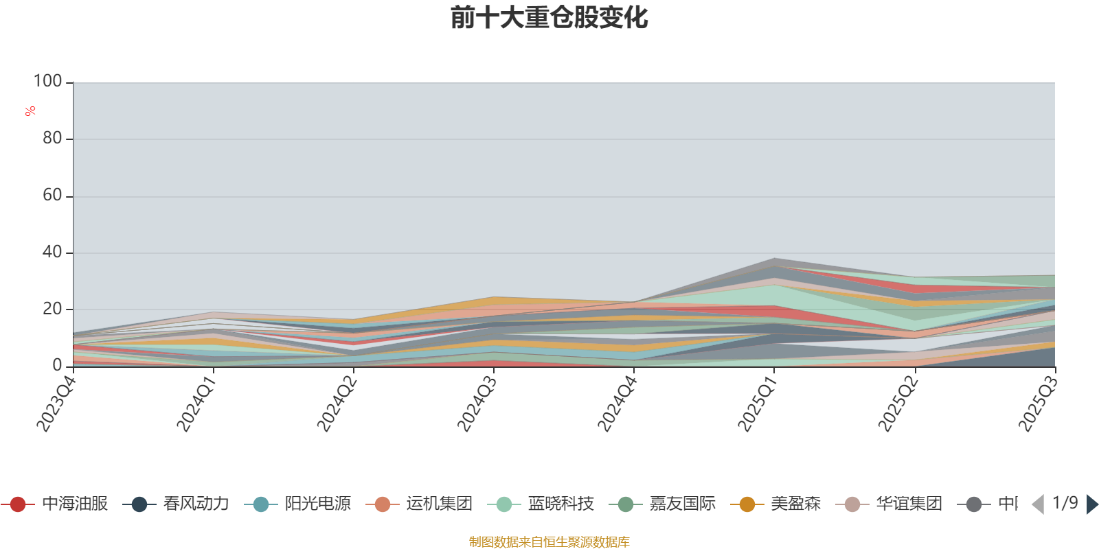 截至2025年三季度末,基金十大重仓股分别是春风动力、山西汾酒、天孚通信、中际旭创、宁德时代、中金黄金、润丰股份、美盈森、传音控股、依依股份。