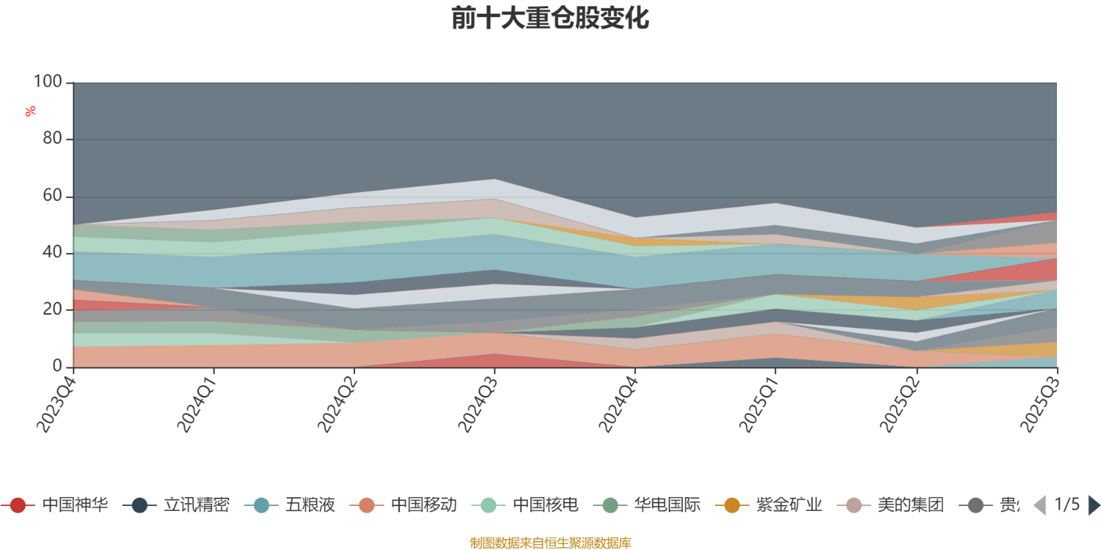 截至2025年三季度末,基金十大重仓股分别是山西汾酒、泸州老窖、广发证券、宁德时代、中国平安、贵州茅台、紫金矿业、五粮液、新华保险、中国太保。