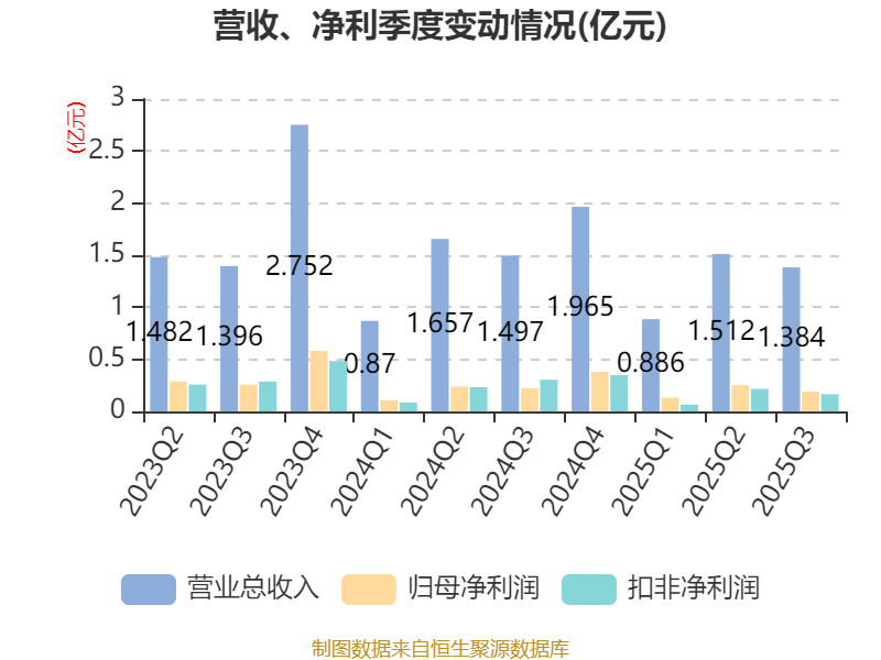 2025年前三季度,公司流动比率为3.04,速动比率为2.55。