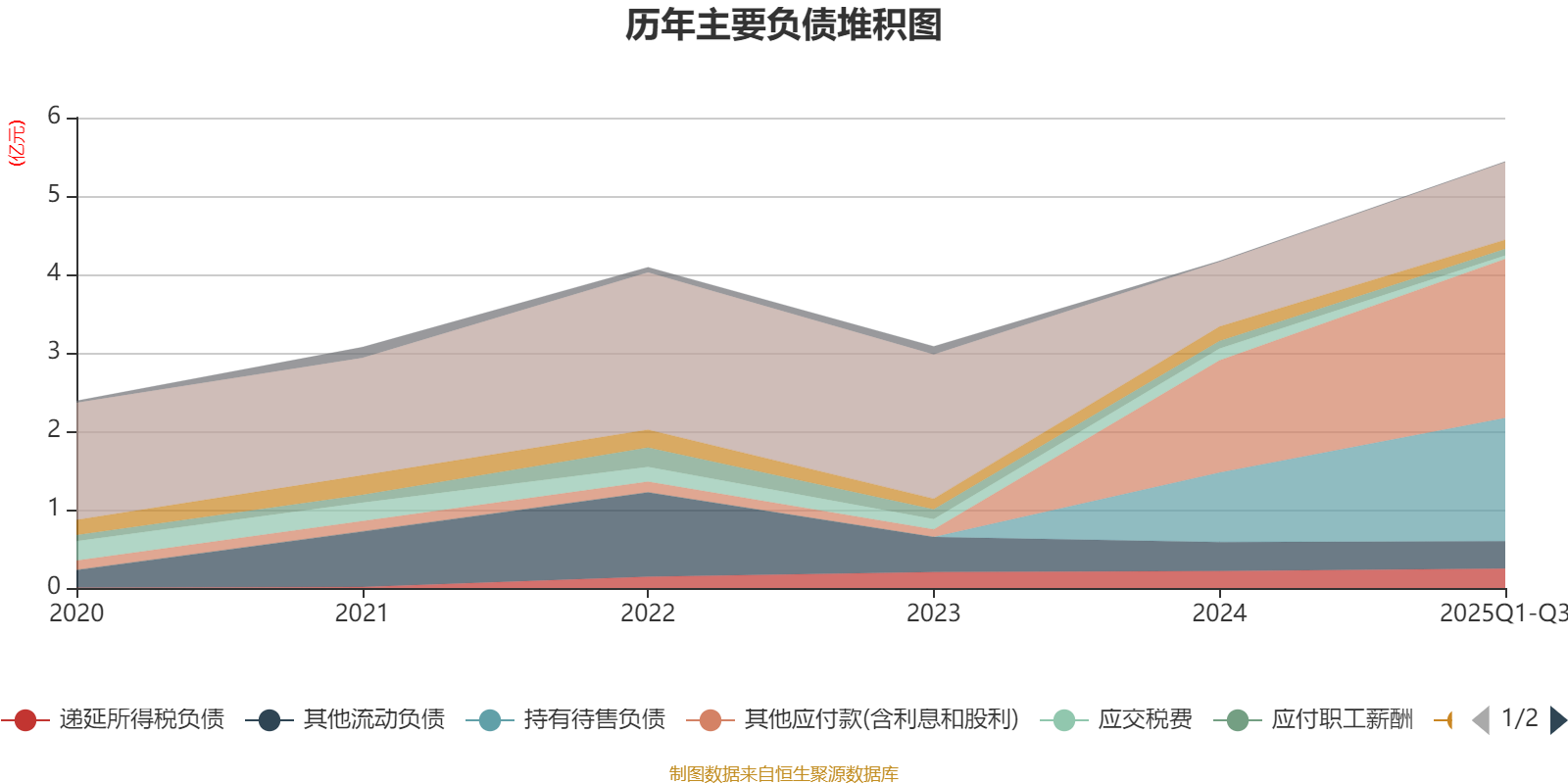 负债重大变化方面,截至2025年三季度末,公司持有待售负债较上年末增加76.95%,占公司总资产比重上升2.42个百分点;其他应付款(含利息和股利)较上年末增加41.97%,占公司总资产比重上升2.12个百分点;应付票据及应付账款较上年末增加19.75%,占公司总资产比重上升0.57个百分点;应交税费较上年末减少71.59%,占公司总资产比重下降0.38个百分点。