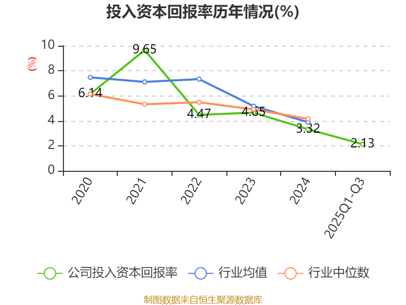 盈利能力方面, 2025年前三季度公司加权平均净资产收益率为2.37%。公司2025年前三季度投入资本回报率为2.13%,较上年同期上升0.2个百分点。