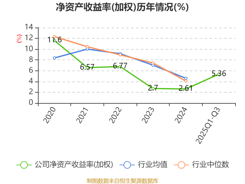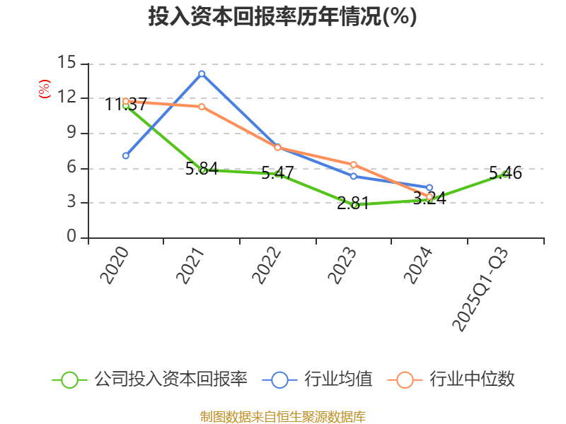盈利能力方面, 2025年前三季度公司加权平均净资产收益率为5.36%,同比上升0.28个百分点。公司2025年前三季度投入资本回报率为5.46%,较上年同期上升0.47个百分点。
