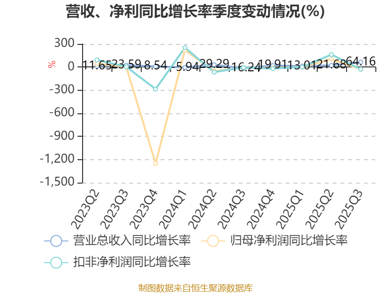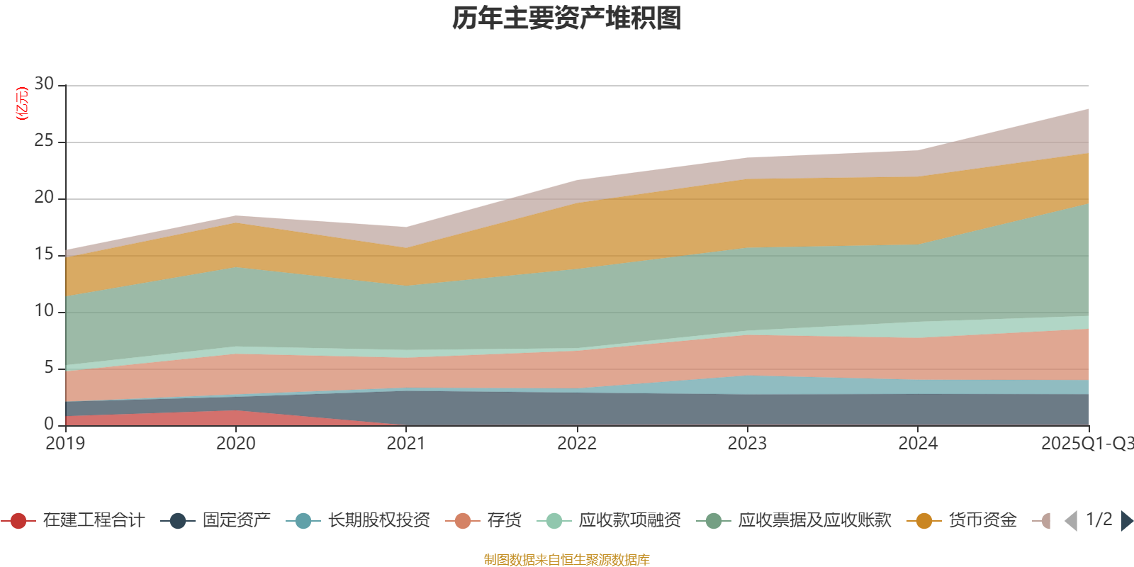 资产重大变化方面,截至2025年三季度末,公司货币资金较上年末减少25.62%,占公司总资产比重下降8.75个百分点;应收票据及应收账款较上年末增加45.37%,占公司总资产比重上升7.39个百分点;应收款项融资较上年末减少18.15%,占公司总资产比重下降1.68个百分点;交易性金融资产合计较上年末增加555.17%,占公司总资产比重上升1.67个百分点。