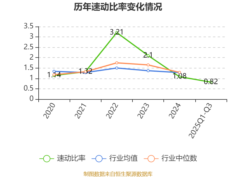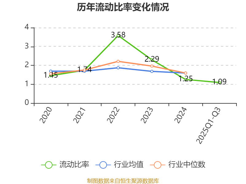 2025年前三季度,公司流动比率为1.09,速动比率为0.82。