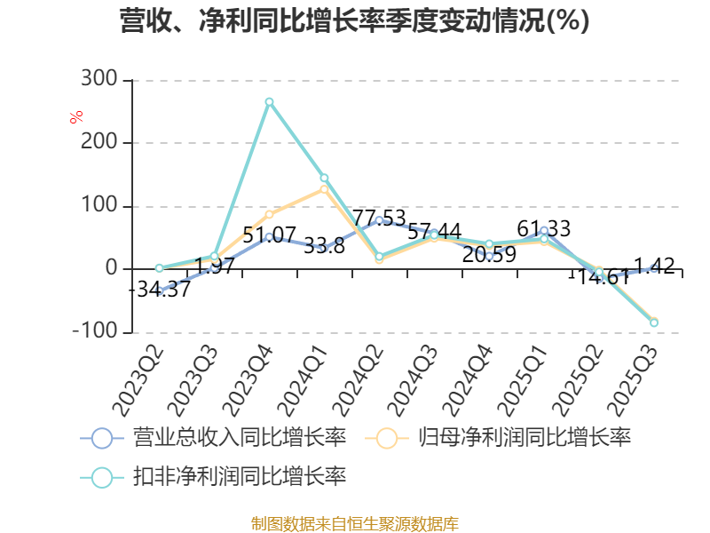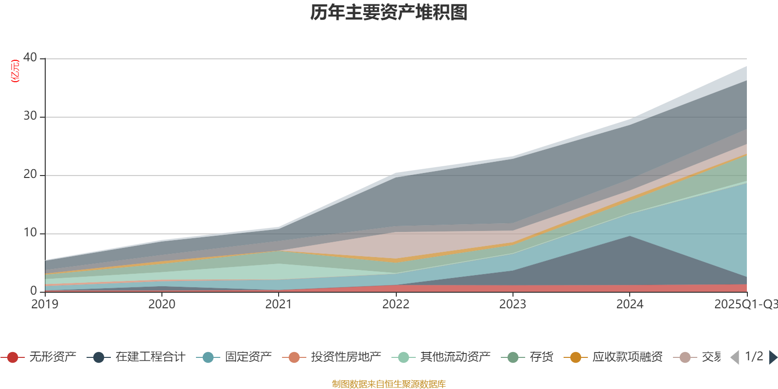 资产重大变化方面,截至2025年三季度末,公司固定资产较上年末增加329.17%,占公司总资产比重上升28.91个百分点;在建工程合计较上年末减少85.07%,占公司总资产比重下降25.26个百分点;货币资金较上年末减少10.29%,占公司总资产比重下降9.88个百分点;存货较上年末增加107.34%,占公司总资产比重上升4.18个百分点。