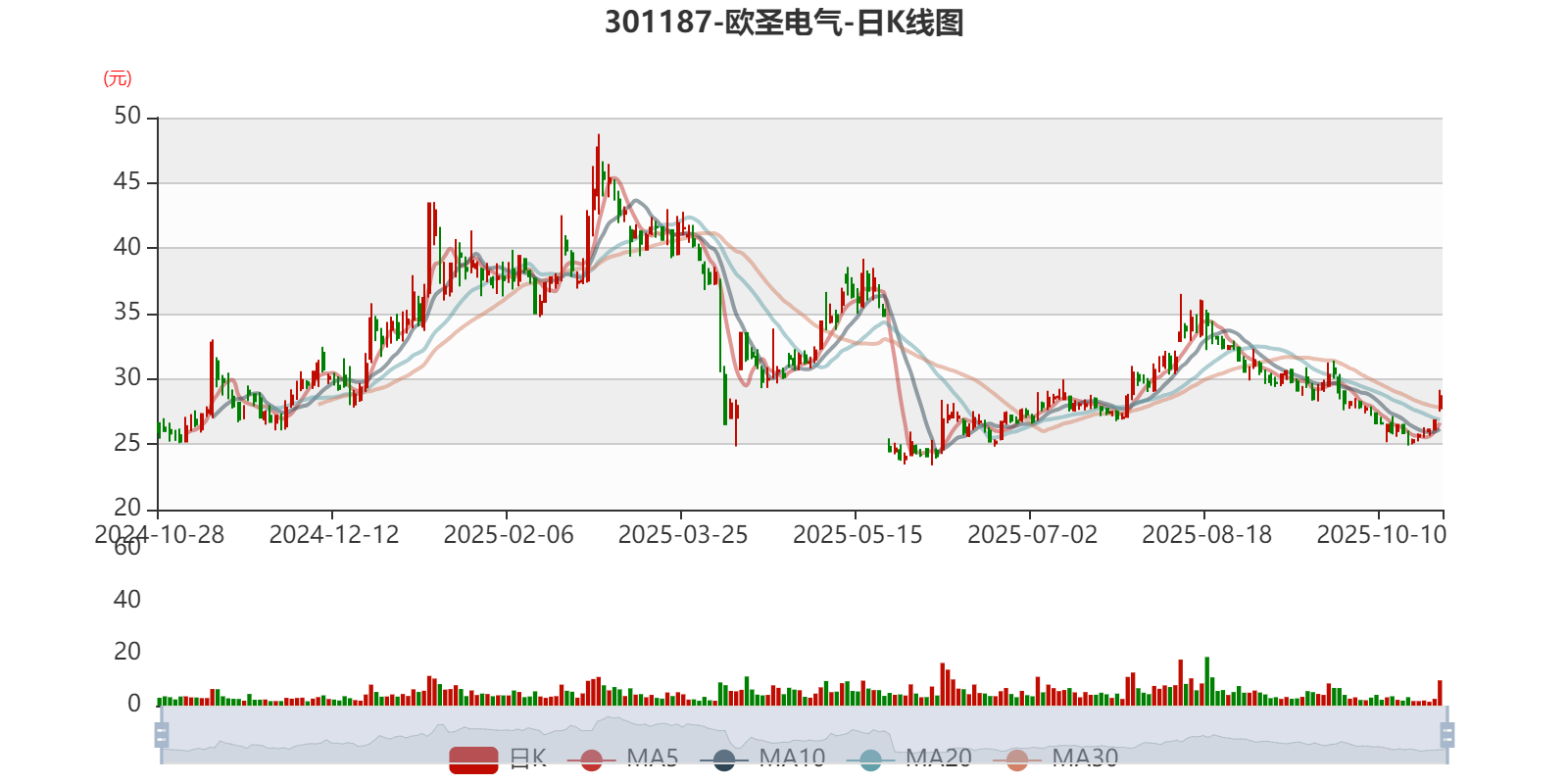 以10月27日收盘价计算,欧圣电气目前市盈率(TTM)约为36.69倍,市净率(LF)约4.82倍,市销率(TTM)约3.82倍。
