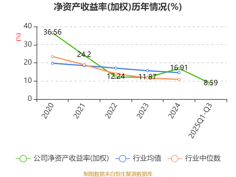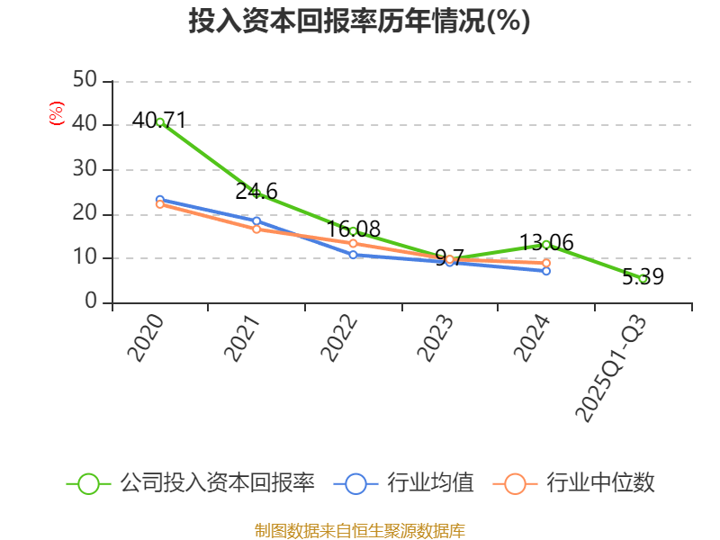 盈利能力方面, 2025年前三季度公司加权平均净资产收益率为8.59%,同比下降3.99个百分点。公司2025年前三季度投入资本回报率为5.39%,较上年同期下降4个百分点。