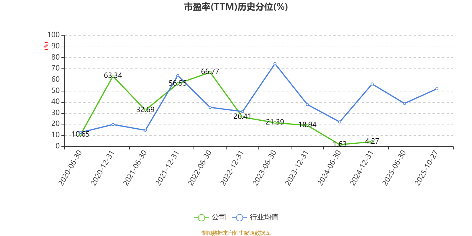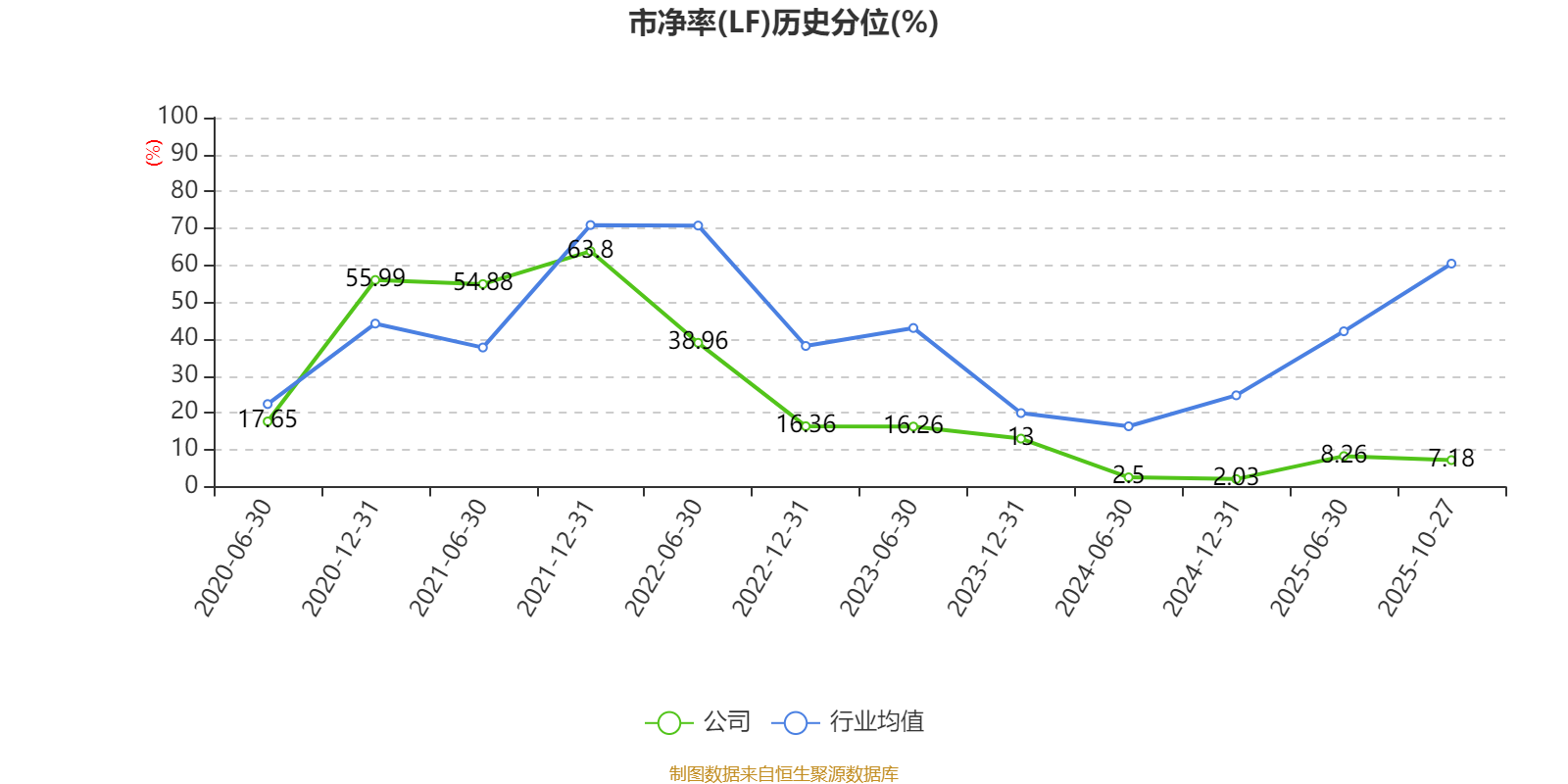 市盈率、市净率为负时,不显示当期分位数,会导致折线图中断。