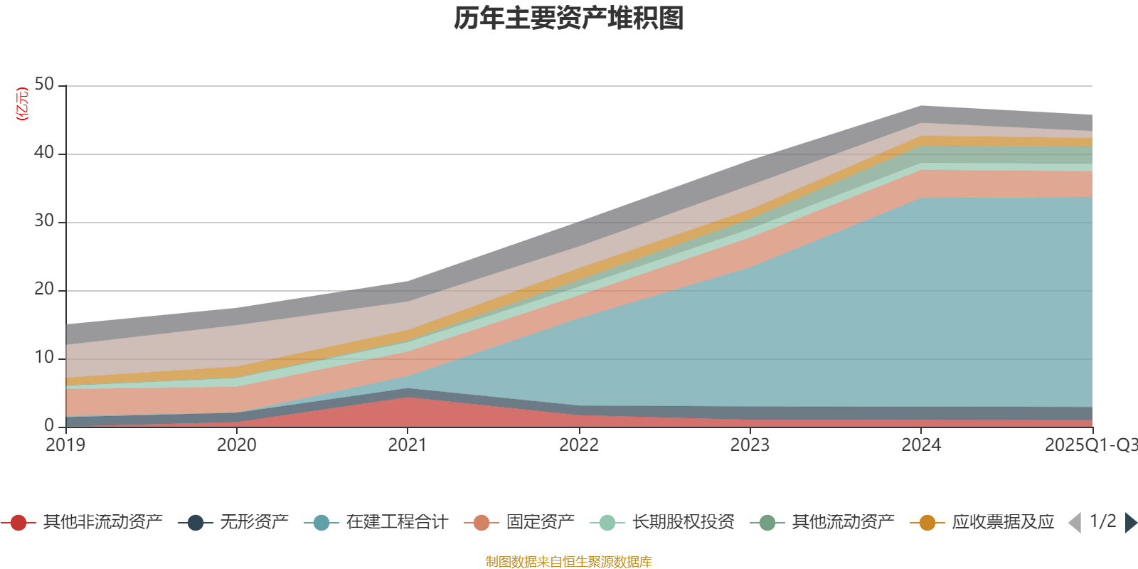 资产重大变化方面,截至2025年三季度末,公司在建工程合计较上年末增加0.6%,占公司总资产比重上升2.33个百分点;货币资金较上年末减少45.81%,占公司总资产比重下降1.76个百分点;固定资产较上年末减少7.93%,占公司总资产比重下降0.46个百分点;预付款项较上年末减少29.08%,占公司总资产比重下降0.45个百分点。