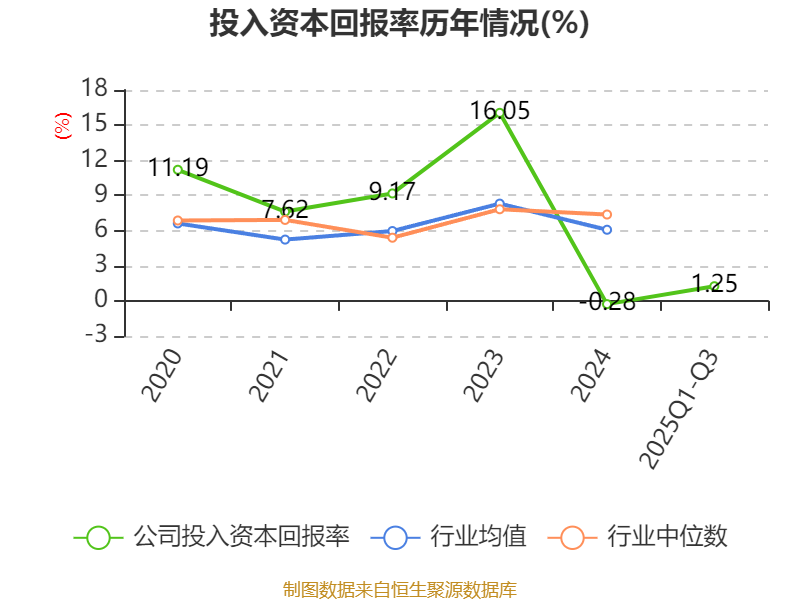 盈利能力方面, 2025年前三季度公司加权平均净资产收益率为-0.05%,同比下降1.87个百分点。公司2025年前三季度投入资本回报率为1.25%,较上年同期上升0.1个百分点。