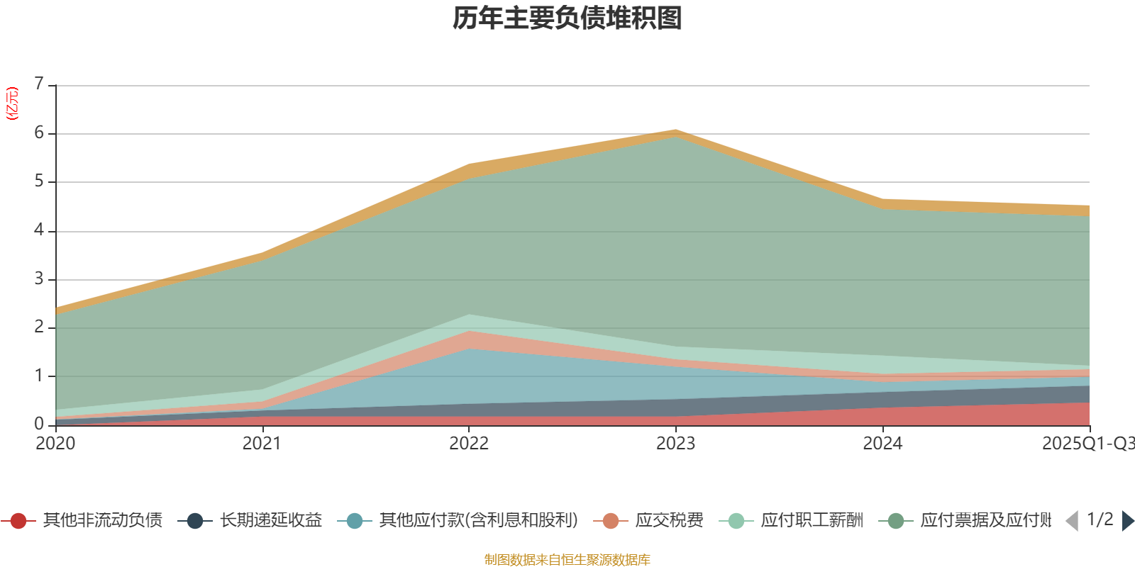 负债重大变化方面,截至2025年三季度末,公司应付职工薪酬较上年末减少80.66%,占公司总资产比重下降0.69个百分点;应付票据及应付账款较上年末增加2.11%,占公司总资产比重下降0.28个百分点;其他非流动负债较上年末增加28.35%,占公司总资产比重上升0.16个百分点;其他流动负债较上年末减少35.23%,占公司总资产比重下降0.1个百分点。