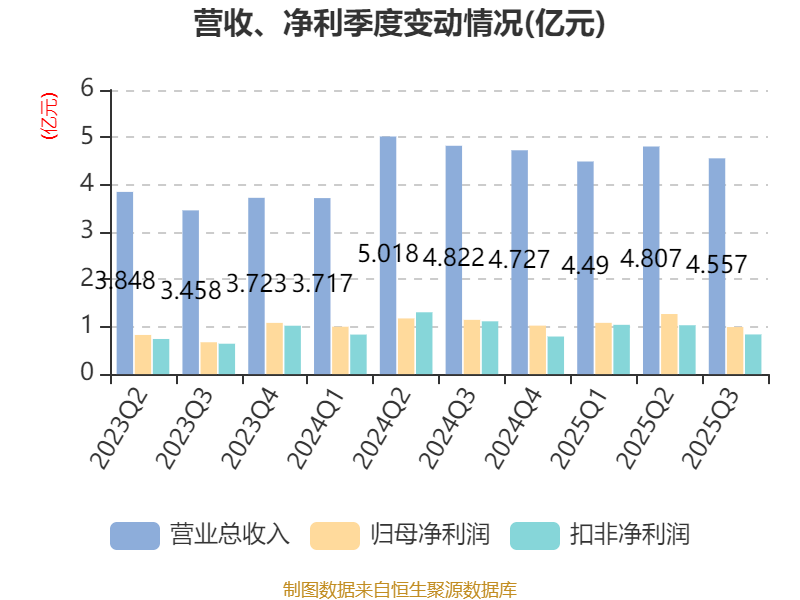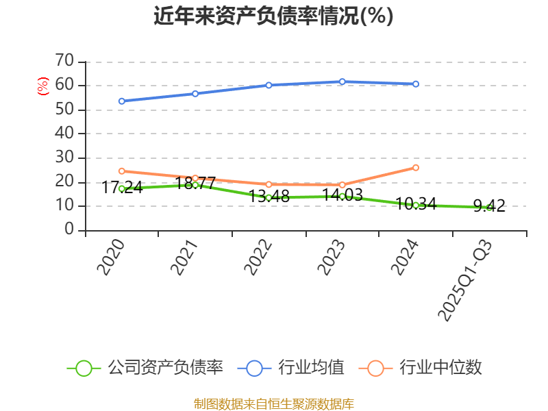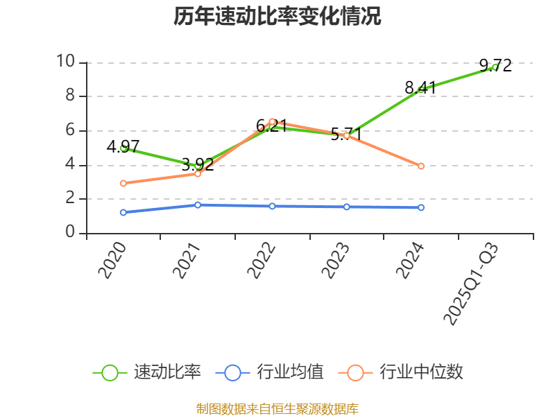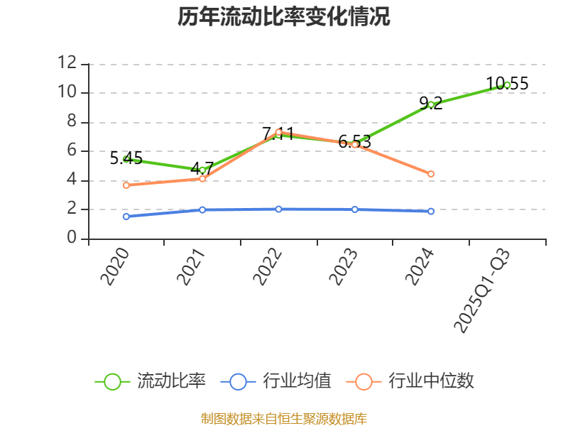 2025年前三季度,公司流动比率为10.55,速动比率为9.72。