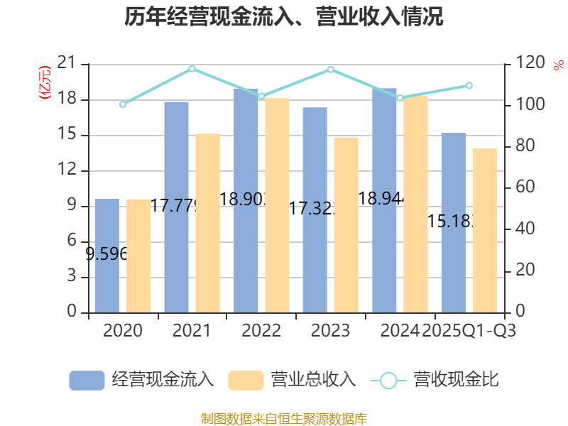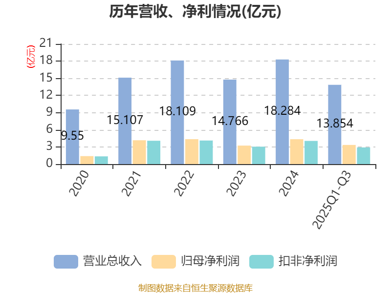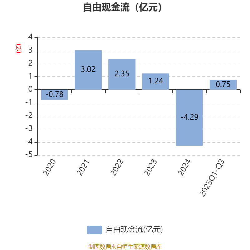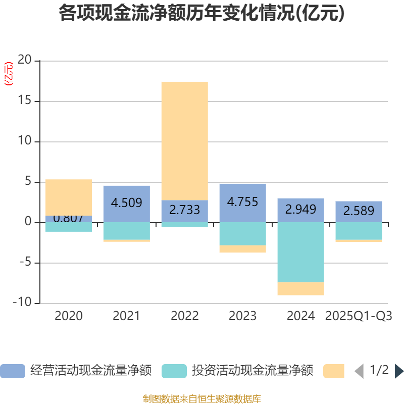 2025年前三季度,公司经营活动现金流净额为2.59亿元,同比增长52.14%;筹资活动现金流净额-2653.19万元,同比增加1.11亿元;投资活动现金流净额-2.17亿元,上年同期为-8.76亿元。