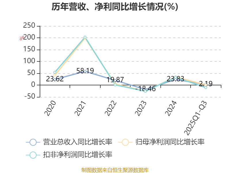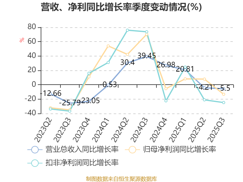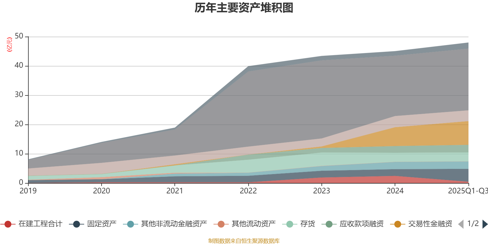 资产重大变化方面,截至2025年三季度末,公司在建工程合计较上年末减少82.31%,占公司总资产比重下降4.48个百分点;固定资产较上年末增加90.37%,占公司总资产比重上升4.02个百分点;交易性金融资产合计较上年末增加26.03%,占公司总资产比重上升2.62个百分点;货币资金较上年末增加2.23%,占公司总资产比重下降1.85个百分点。