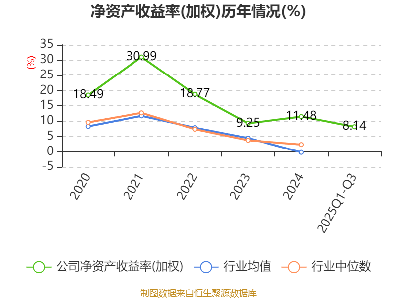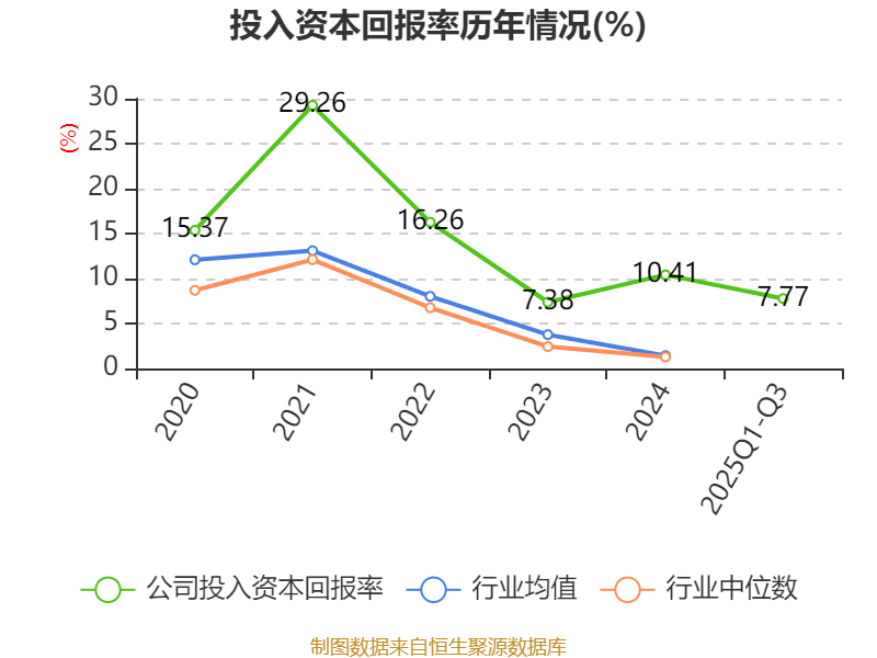 盈利能力方面, 2025年前三季度公司加权平均净资产收益率为8.14%,同比下降0.72个百分点。公司2025年前三季度投入资本回报率为7.77%,较上年同期下降0.24个百分点。
