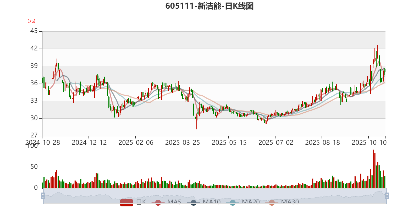 中证智能财讯新洁能(605111)10月28日披露2025年第三季度报告。前三季度公司实现营业总收入13.85亿元,同比增长2.19%;归母净利润3.35亿元,同比增长0.70%;扣非净利润2.91亿元,同比下降10.60%;经营活动产生的现金流量净额为2.59亿元,同比增长52.14%;报告期内,新洁能基本每股收益为0.81元,加权平均净资产收益率为8.14%。