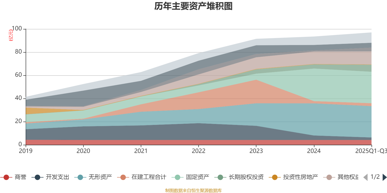 资产重大变化方面,截至2025年三季度末,公司长期股权投资较上年末增加66.24%,占公司总资产比重上升2.32个百分点;应收票据及应收账款较上年末增加229.24%,占公司总资产比重上升2.29个百分点;固定资产较上年末减少3.25%,占公司总资产比重下降2.05个百分点;开发支出较上年末减少45.37%,占公司总资产比重下降1.95个百分点。
