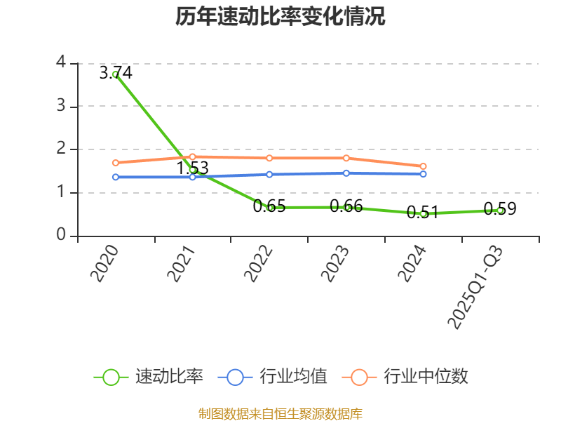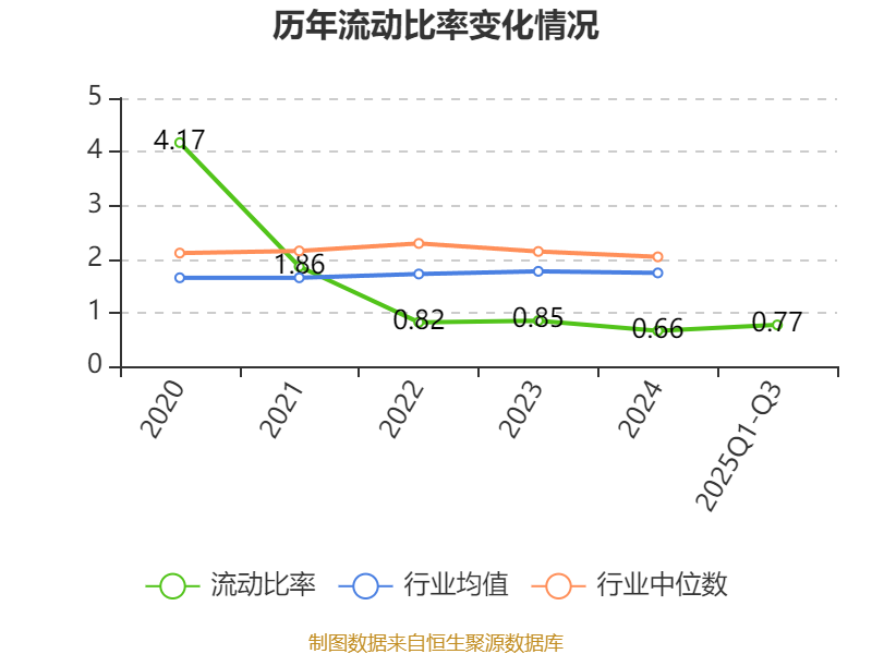 2025年前三季度,公司流动比率为0.77,速动比率为0.59。