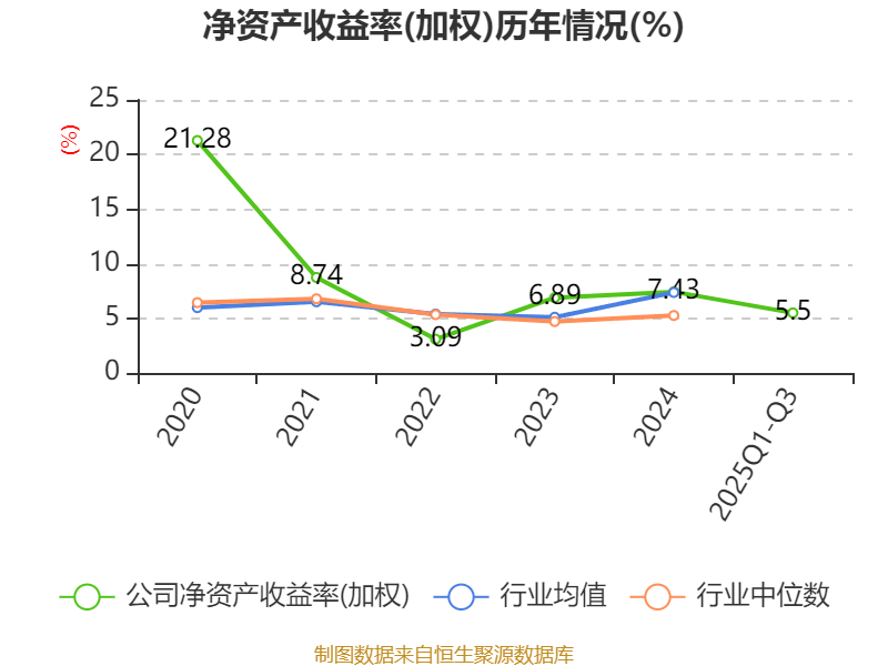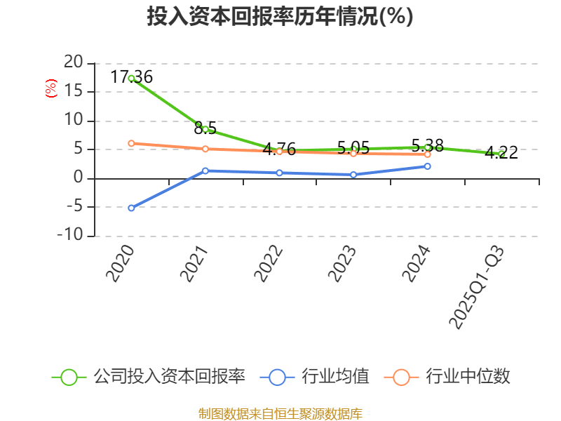 盈利能力方面, 2025年前三季度公司加权平均净资产收益率为5.5%,同比下降2.14个百分点。公司2025年前三季度投入资本回报率为4.22%,较上年同期下降1.2个百分点。