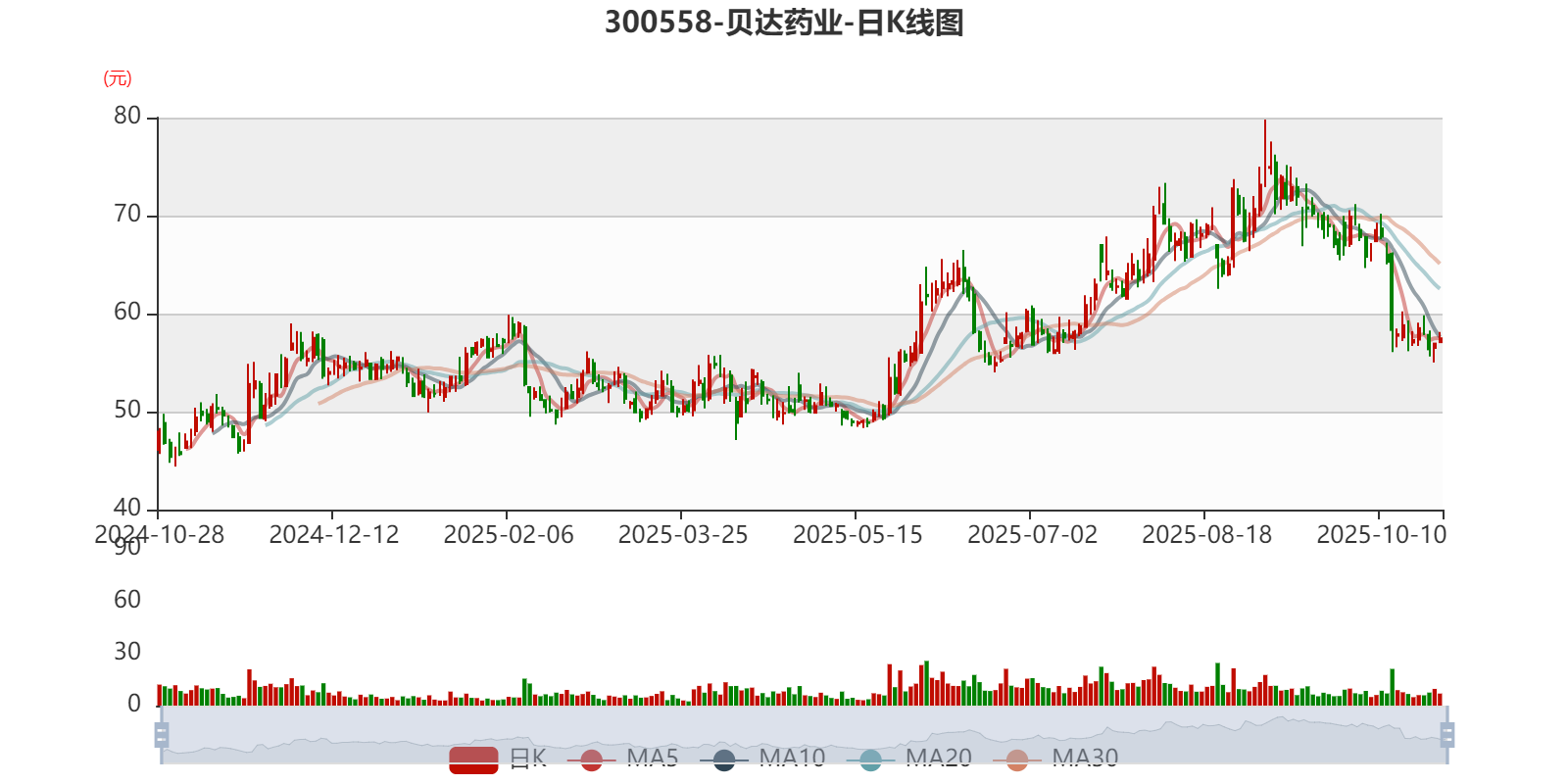 中证智能财讯贝达药业(300558)10月28日披露2025年第三季度报告。前三季度公司实现营业总收入27.17亿元,同比增长15.90%;归母净利润3.17亿元,同比下降23.86%;扣非净利润3.37亿元,同比下降6.74%;经营活动产生的现金流量净额为6.68亿元,同比下降19.60%;报告期内,贝达药业基本每股收益为0.76元,加权平均净资产收益率为5.50%。