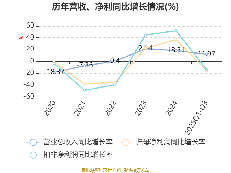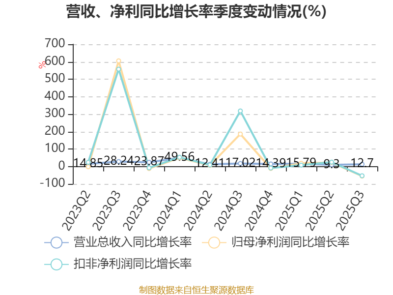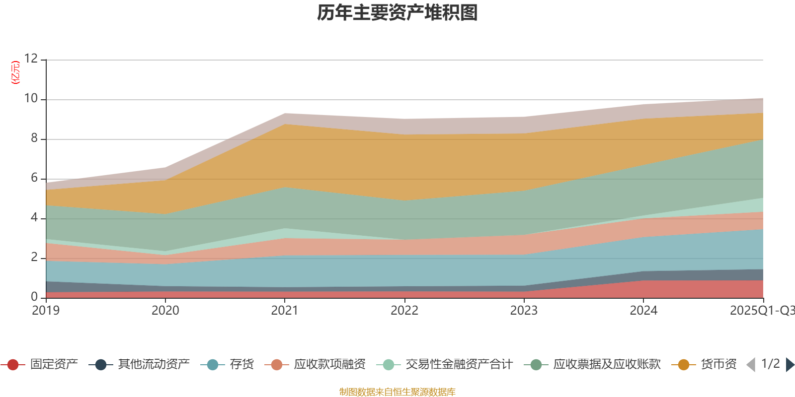 资产重大变化方面,截至2025年三季度末,公司货币资金较上年末减少42.5%,占公司总资产比重下降10.59个百分点;交易性金融资产合计较上年末增加366.67%,占公司总资产比重上升5.42个百分点;应收票据及应收账款较上年末增加15.71%,占公司总资产比重上升3.17个百分点;存货较上年末增加17.33%,占公司总资产比重上升2.41个百分点。
