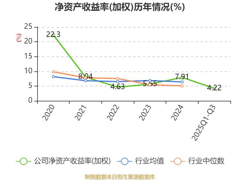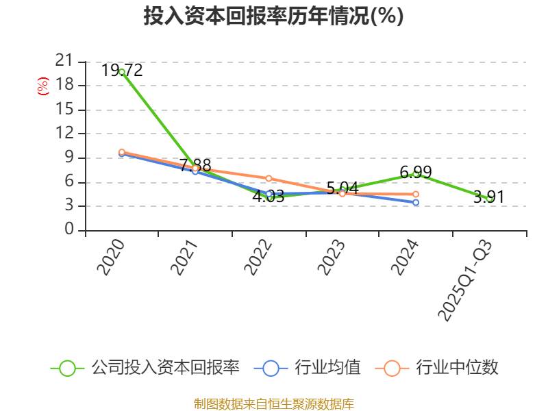 盈利能力方面, 2025年前三季度公司加权平均净资产收益率为4.22%,同比下降0.87个百分点。公司2025年前三季度投入资本回报率为3.91%,较上年同期下降0.66个百分点。