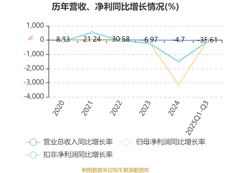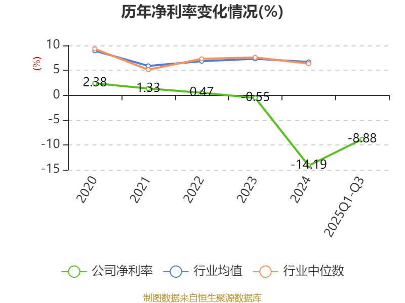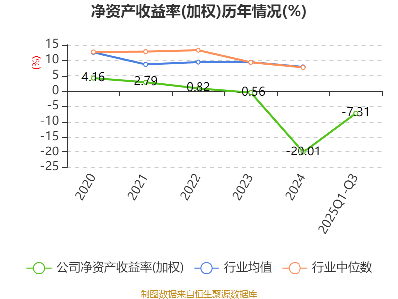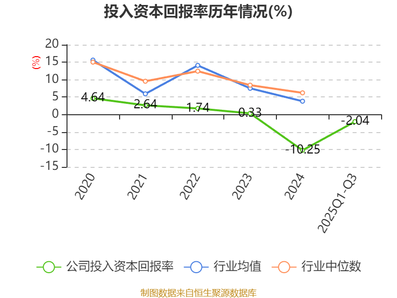 盈利能力方面, 2025年前三季度公司加权平均净资产收益率为-7.31%,同比下降4.08个百分点。公司2025年前三季度投入资本回报率为-2.04%,较上年同期下降2.35个百分点。